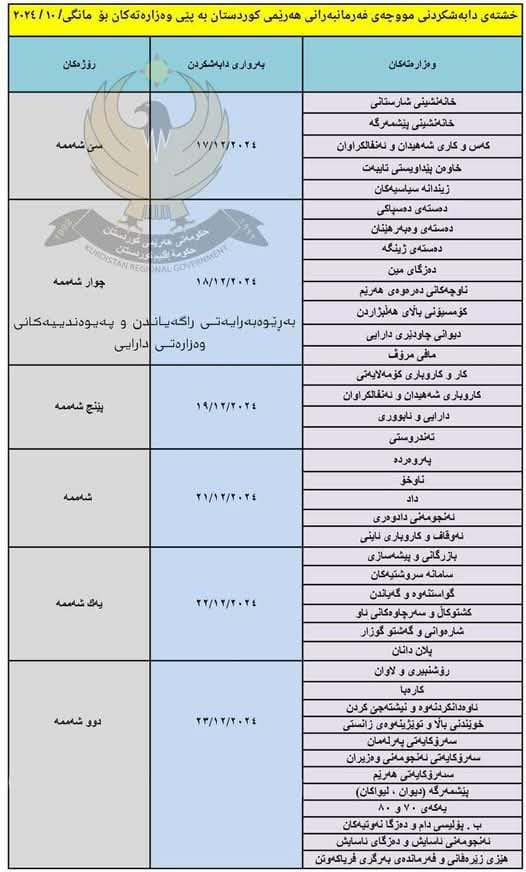لە رۆژی سێشەممە، 17ـی مانگەوە دەستدەکرێت بە دابەشکردنی مووچە وتا رۆژی دووشەممە، 23ـی مانگ دەخایەنێت